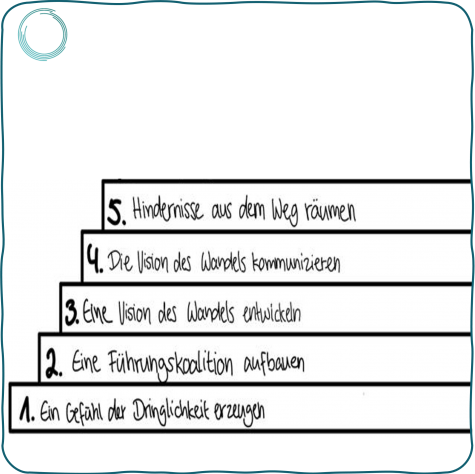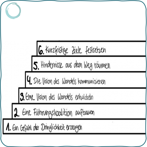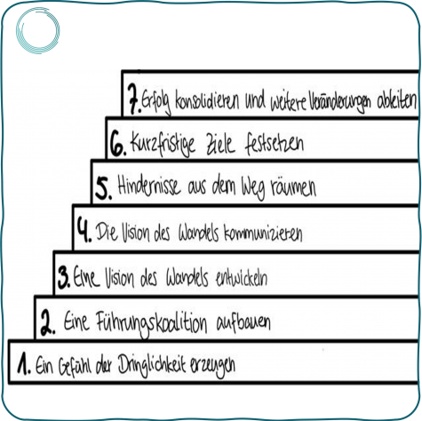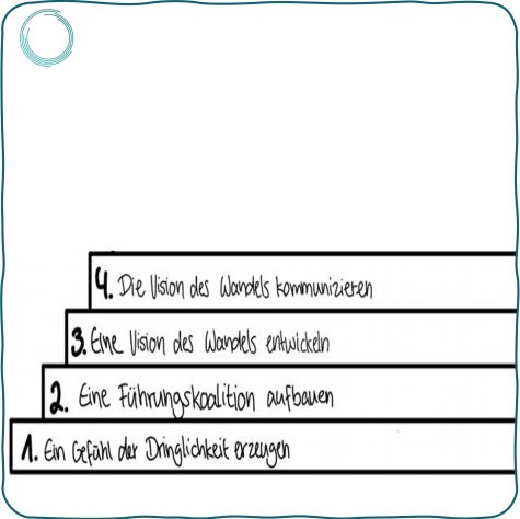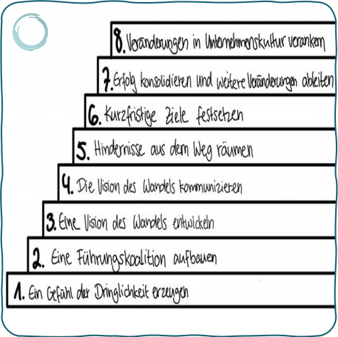Es gibt viele Erfahrungswerte zur Planung und Durchführung einer agilen Transformation. Ein bewährter Ansatz bildet der 8-Schritte Prozess von John Kotter.